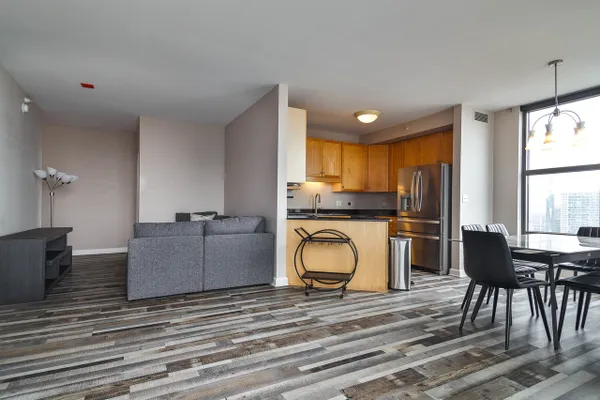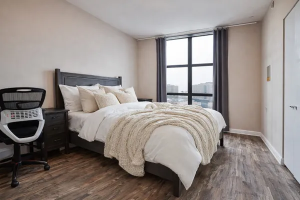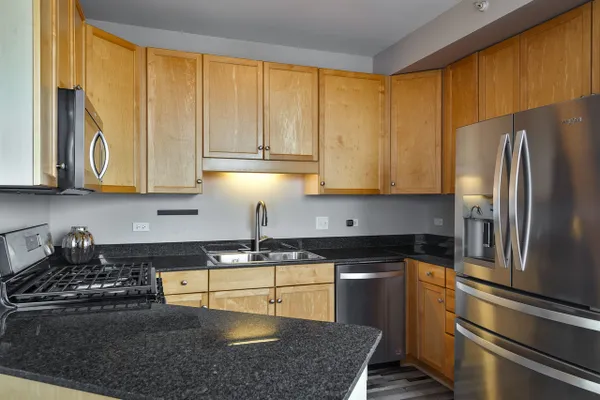 Rarely available southwest corner residence with jaw dropping skyline views and incredible natural light in one of the South Loop's most sought after full amenity buildings. Floor to ceiling windows wrap the home and flood the space with sunlight while framing sweeping city views that stretch for miles. The open living and dining area flows directly to a private balcony overlooking the skyline, creating the perfect setting for morning coffee, sunset cocktails, and effortless entertaining. The kitchen is polished and functional with granite countertops, new stainless steel appliances, and generous cabinet storage, opening seamlessly to the main living space so the cook is always part of the conversation. The highly desirable split bedroom floor plan places each bedroom on opposite sides of the home for privacy, with each bedroom enjoying access to its own full bathroom. Whether hosting guests, sharing space, or working from home, the layout simply works. Additionally, the condo features in unit laundry. Residents enjoy a full suite of amenities including 24 hour door staff, outdoor pool, expansive sun deck, party room, dog run, community garden, bike room with air pump, and on site professional management. The building is exceptionally well run with strong reserves. One deeded garage parking space and a storage locker are INCLUDED in the purchase price. The location is simply outstanding. Step outside your door and walk to Trader Joe's, Jewel, neighborhood cafes, CTA trains, Grant Park, the Lakefront, Museum Campus, dog parks, and some of Chicago's best dining and entertainment.
